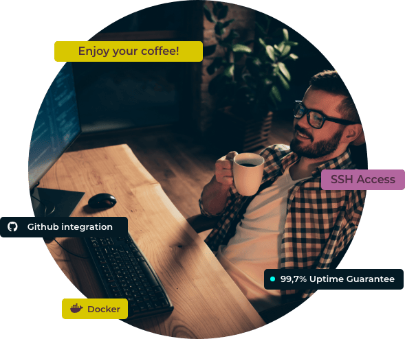 Puedes desplegar tus Odoos con nuestra app gratuita y tener actualizaciones de Odoo y mejoras de configuración de sistema automáticas o puedes configurar a medida tus contenedores a través de la interfaz de gestión.
